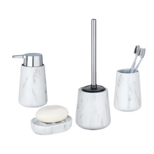 טוטאל-לוק מעוצב: במקום לאסוף פריטים בודדים שאינם מתאימים, סדרת ADRADA מאפשרת לכם ליצור הרמוניה עיצובית מלאה בין הדיספנסר לסבון, מעמד המברשות, הסבוניה ומברשת האסלה.