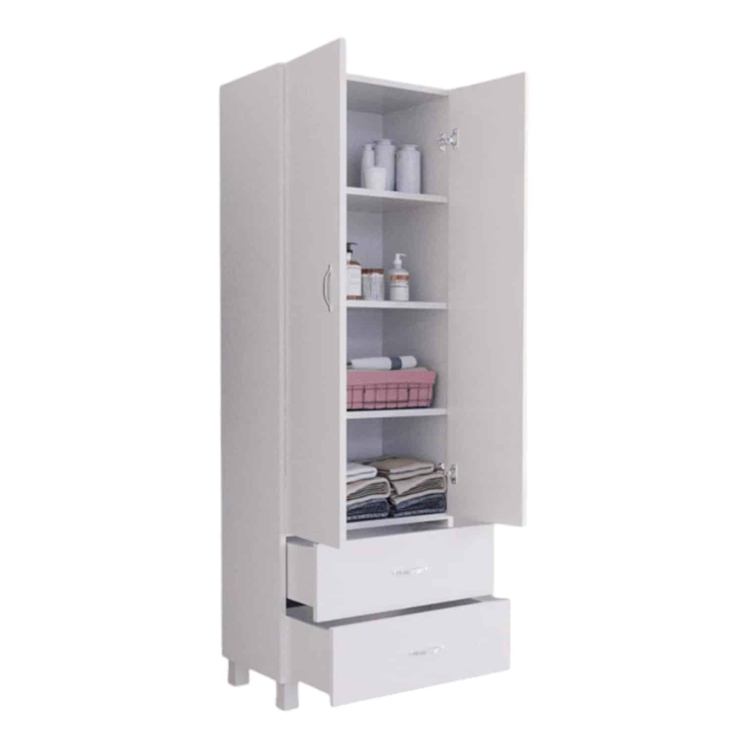- שילוב פרקטי: שתי דלתות רחבות ושתי מגירות מרווחות מספקות שפע של מקום לאחסון בגדים מקופלים, חולצות, מכנסיים ואביזרים קטנים.
