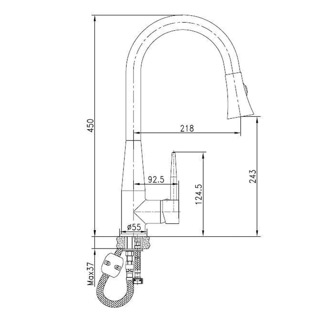 הצינור הנשלף הגמיש במיוחד, פית הפעמון הייחודית עם 2 מצבי זרימה, וזוג צינורות באורך 50 ס"מ הופכים אותו לברז אלגנטי ופונקציונלי כאחד.