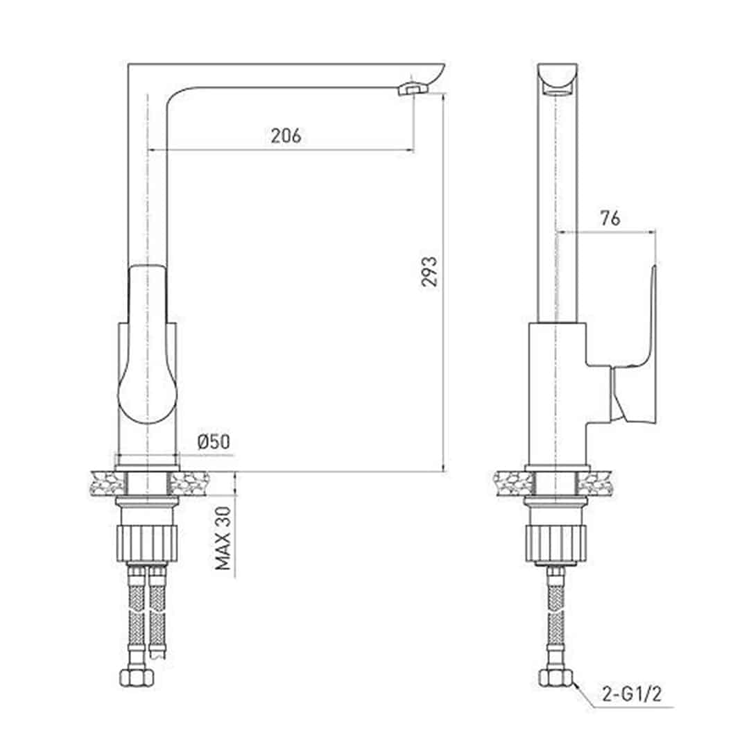 הגימור האלגנטי בשחור מט וכרום ניקל מוסיף נגיעה מתוחכמת לכל מטבח או חדר אמבטיה. בנוסף, הוא מגיע עם זוג צינורות באורך 50 ס"מ להתקנה קלה. חווה את השילוב המושלם בין סגנון ופונקציונליות עם ברז הפרח הגבוה BRANT.